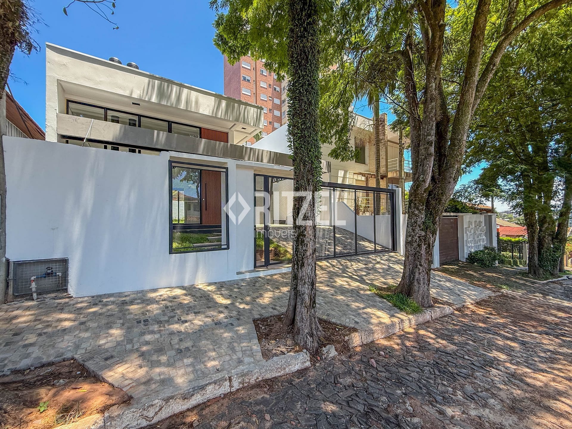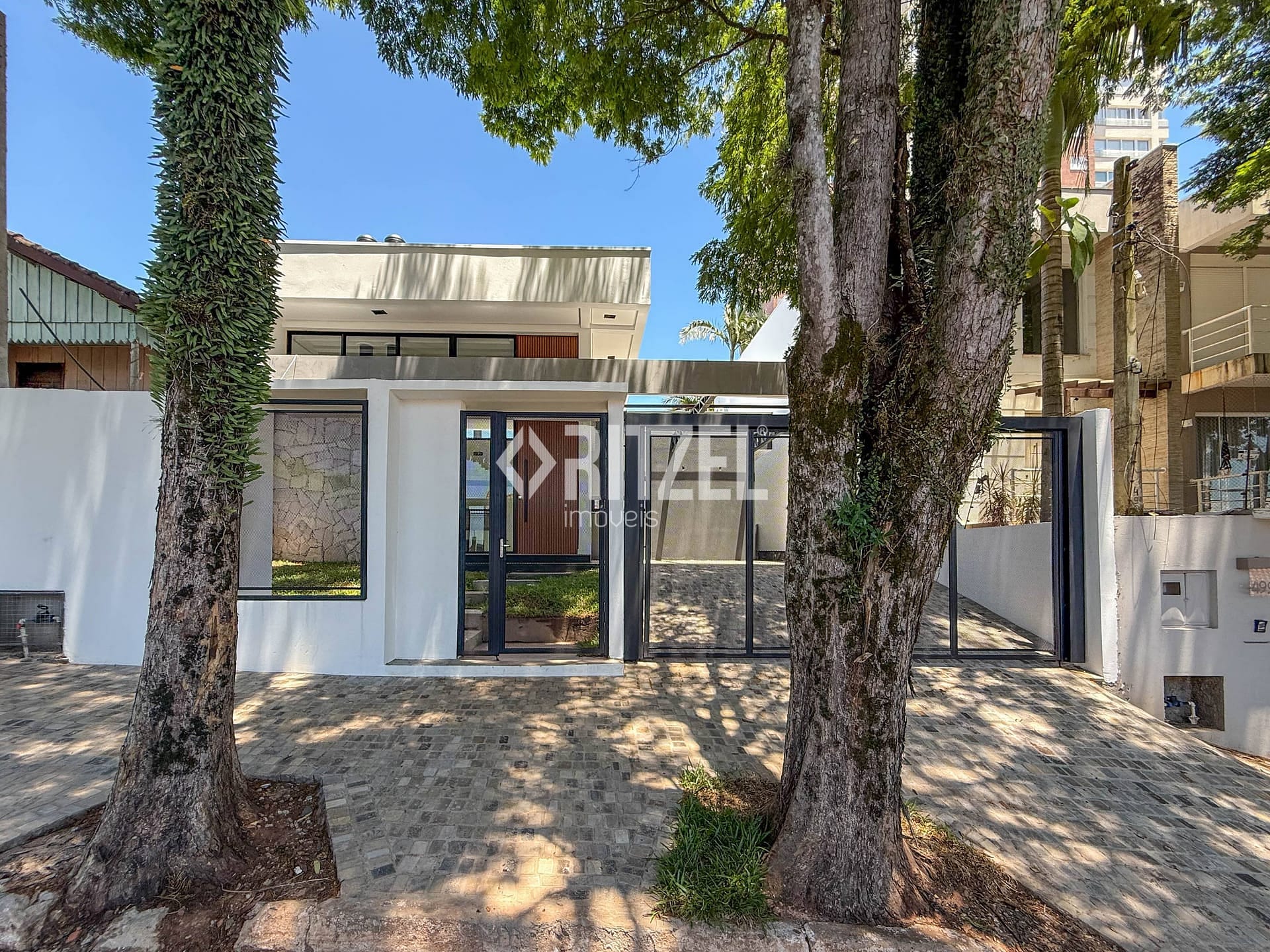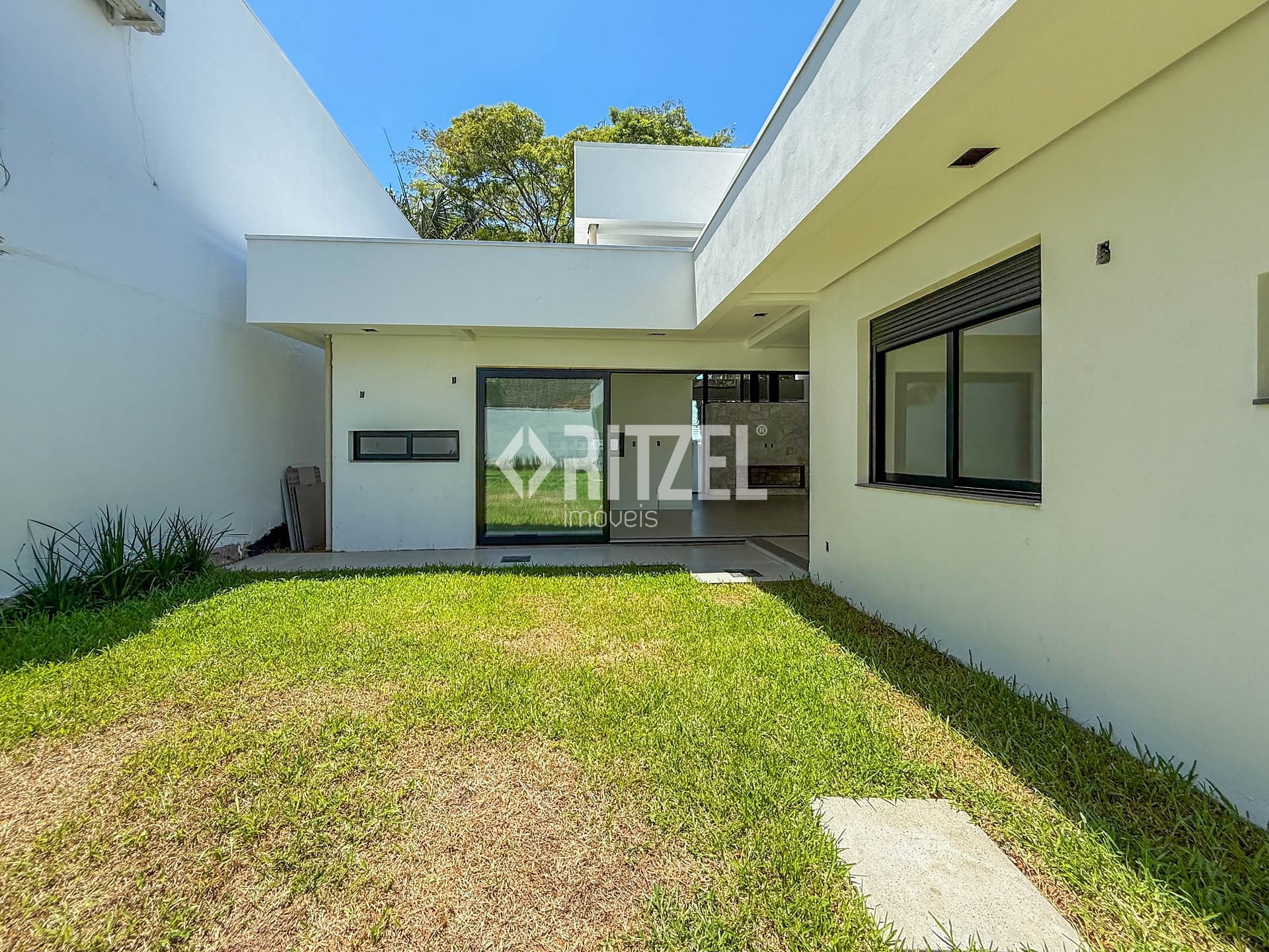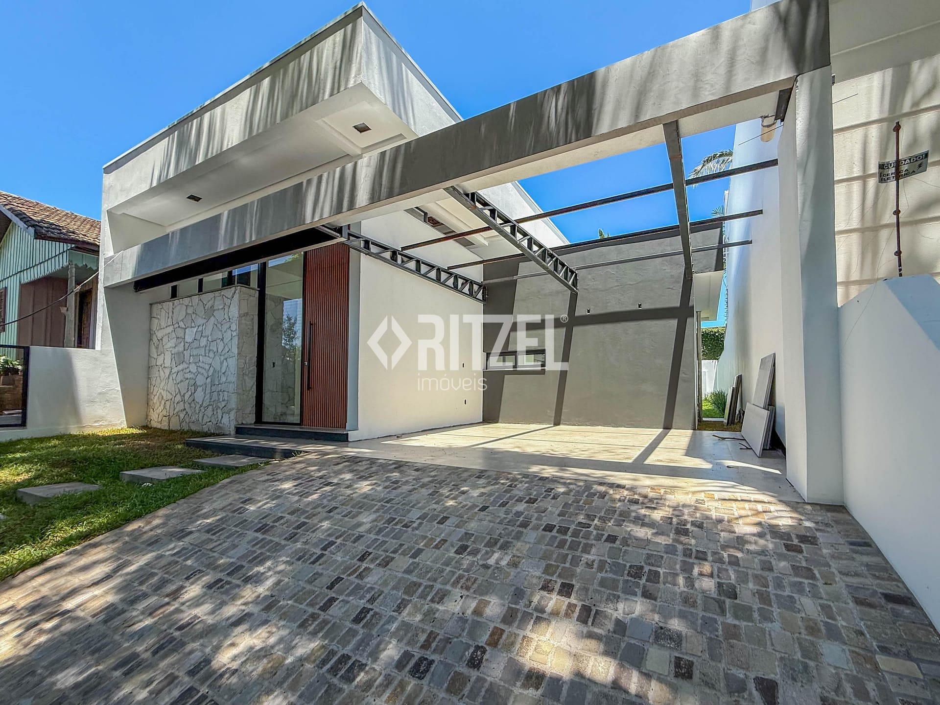 Lançamento: Casa plana e moderna à venda em área nobre, nos altos do bairro Ideal em Novo Hamburgo, composta de hall de entrada, amplo espaço integrado da sala de estar com lareira a lenha, sala de jantar e cozinha, pé direito duplo na área social, lavanderia, lavabo, 3 dormitórios (1 suíte com closet), banheiro social, gourmet externo e garagem coberta para 2 carros. Excelente padrão construtivo com esquadrias em alumínio preto automatizadas nos dormitórios, espera de água quente, piso porcelanato, portas internas em melamina branca, paredes internas com massa corrida, rodapé em pvc, grama em todo o pátio externo, telha de aluzinco, espera de ar condicionado, gesso com cortineiro, calçada no acesso de veículos, revestimento externo em pedra natural e espera para piscina. Excelente localização, com fácil acesso a comércio e serviços. Gostou? Entre em contato, será um prazer lhe atender!