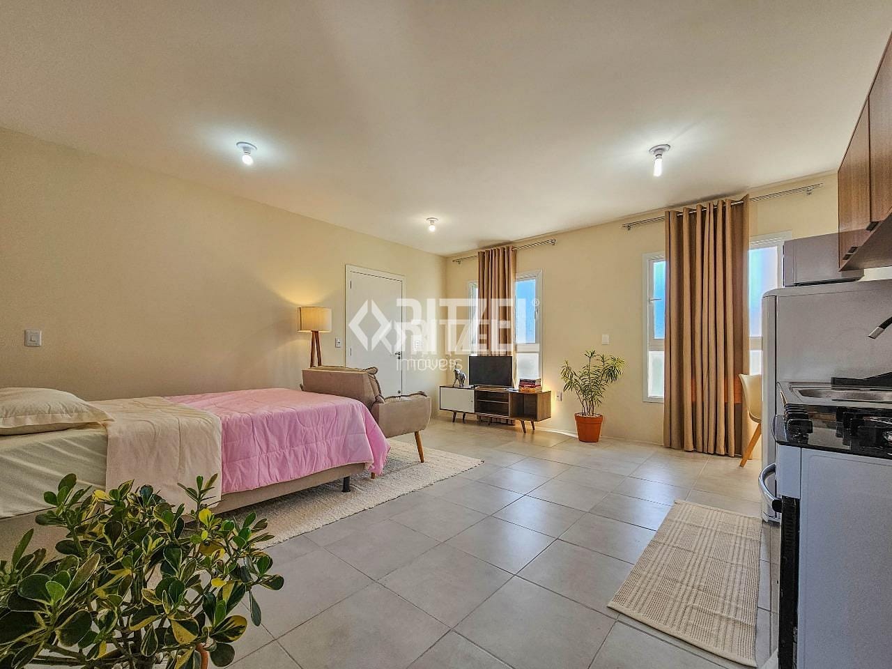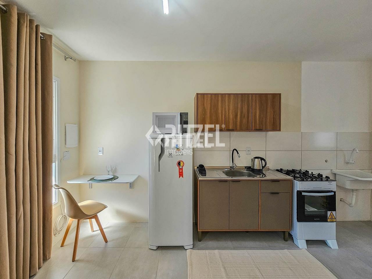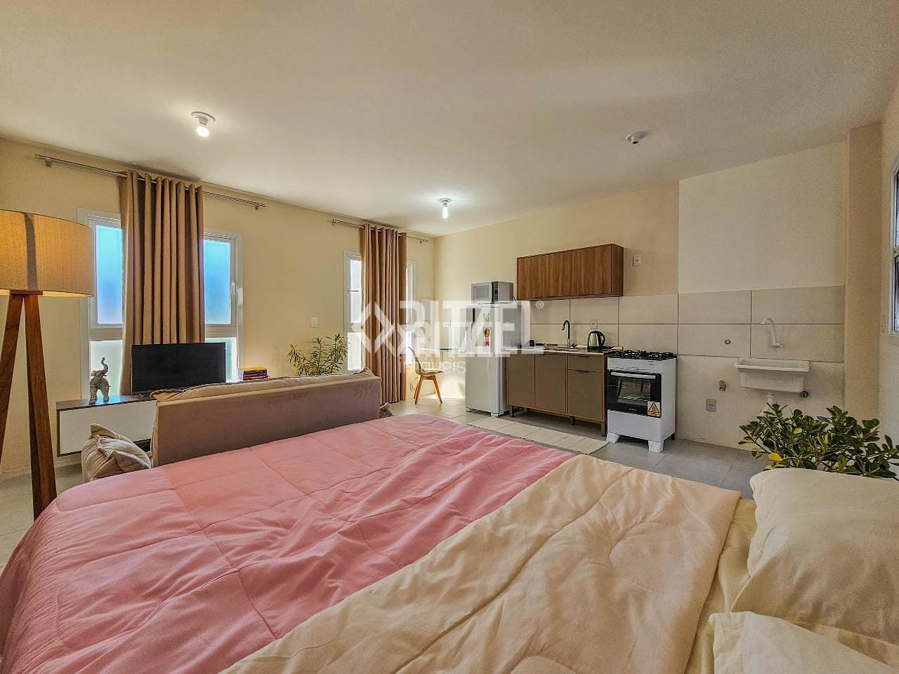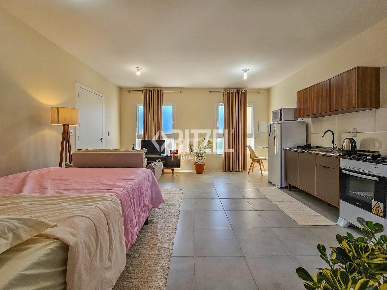 Ótimo studio semi mobiliado, em excelente localização no Bairro Ideal, bem próximo do Hipermercado Zaffari Bourbon e com fácil acesso para estação de trem e para o Centro de Novo Hamburgo. Studio com ambientes integrados entre sala, cozinha e dormitório, 1 banheiro social, área de serviço. Ficam na locação armários de cozinha, fogão, espelho do banheiro, mesa com cadeiras e cortinas. Condominio com baixa taxa condominial. Nos chame e agende sua visita!